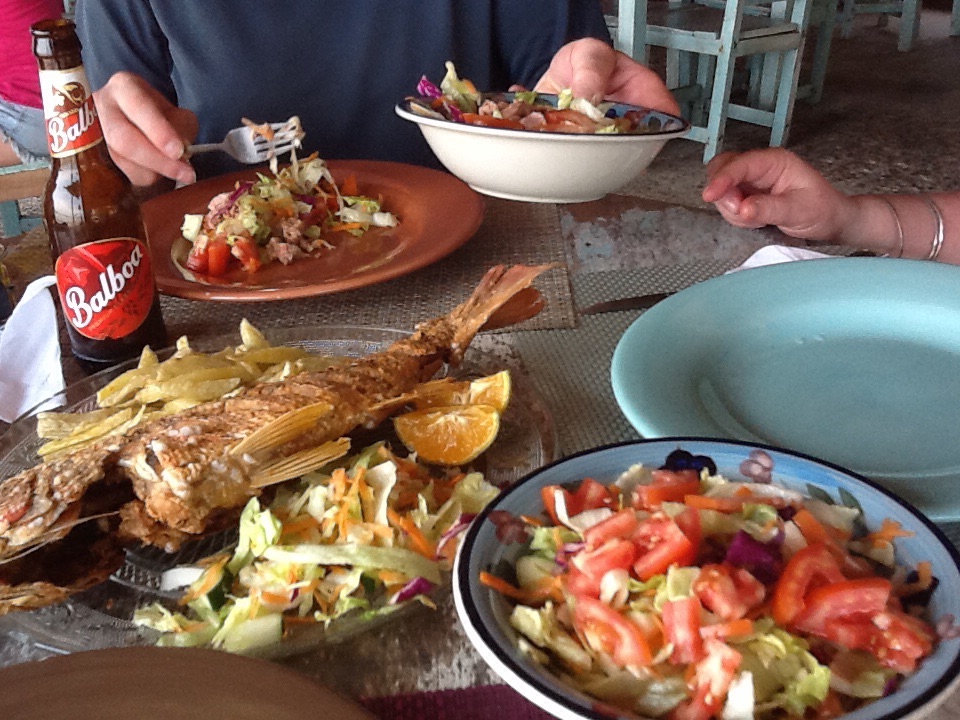 ………is a little fishing village with a population of 300 that has not yet been fully discovered but is on its way! It is a major surfing area and has Hawaiian size waves, apparently, but I haven’t been to Hawaii so I can’t argue with the guidebook. Our accommodation is the best yet, Sol y Mar, and are little cabins with hammocks hanging outside with a great view of the ocean. It’s owned by a Portuguese man, Luis, who came 20 years ago, stayed and developed this over time……..and still misses Faro, his home in Portugal.