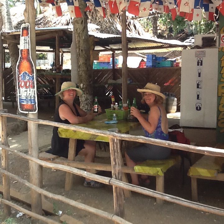 The best beach days ever were at Santa Catalina, a place we returned to with Marilyn as we really enjoyed it with Dawn and Yves and knew she would like it as well.   We decided to stay with Luis at Sol y Mar again and take full advantage of the beach ………… once again we were not disappointed.  Actually the beach was much more inviting than it had been before and we were able to find a little shade each day so as not to turn into lobsters.   The picture above shows the beach from our hilltop accommodation, a forty minute walk away.  We would walk there early in the morning,  swim and body surf, dry off, do it over again and after about two hours we would start our ascent stopping a couple of times on the way for a ‘cool one’ as Jim would say.   Then a bite to eat,  a swim in the pool, rest in the hammock to read/blog/whatever and then shower before cocktails which consisted of Panamanian rum, coconut water and pineapple juice………with ice if we’re lucky!  We’ve got a contest going to come up with the best name……..so far I think the best one is ‘rummingbird’……..and I am not going to win as I didn’t come up with it!