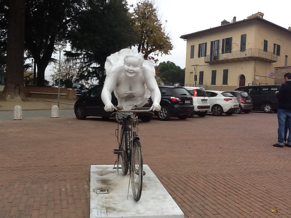 Absolutely loved Sienna(population around 53,000)………one of my favourites! Once again not an easy place to park the car in, which begs the question of what happens when it’s tourist season – a nightmare I shall avoid! Wonderful city to walk around in once you’ve found that parking spot and walked inside old Sienna, the walled city. Apparently it was the first European city to eliminate automobile traffic from its main square in 1966 and would love to see that happen in the Spring Garden Road area in Halifax as it has been talked about for a long time. In the interest of time, and not boring you, I will encourage you to google Sienna if you haven’t been there as it’s so beautiful, refreshing and fun! These bronze figures are everywhere and the one above was titled ‘civil happiness – land of the suns’. Obvious what the one below represents, or is it?