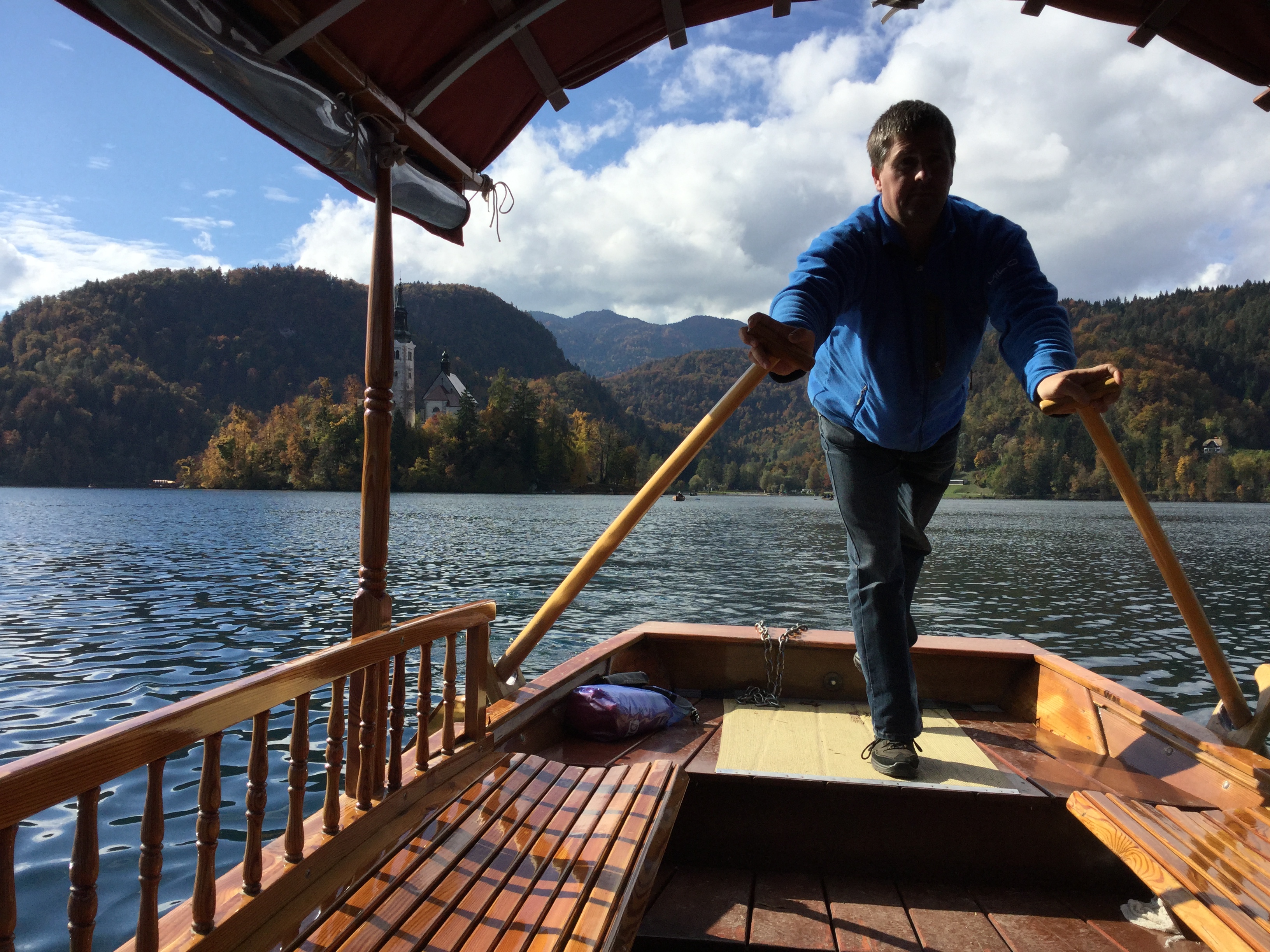 Next stop was Lake Bled with the oarsman to the Island…….we were told to do this in Ljubljana by the beautiful young waitress at the restaurant…….she said it was a must and so we did……..and I highly recommend it for anyone coming to this country. The lake was extremely placid so the trip over was about 20 mins, we spent 40 mins on the Island and then 20 mins back. The Island is famous for its little ancient Church and the many weddings that are performed there…..people come from all over the world to get married there and the day we were there we were witnesses of another beautiful ceremony………beautiful and extremely expensive I am sure!